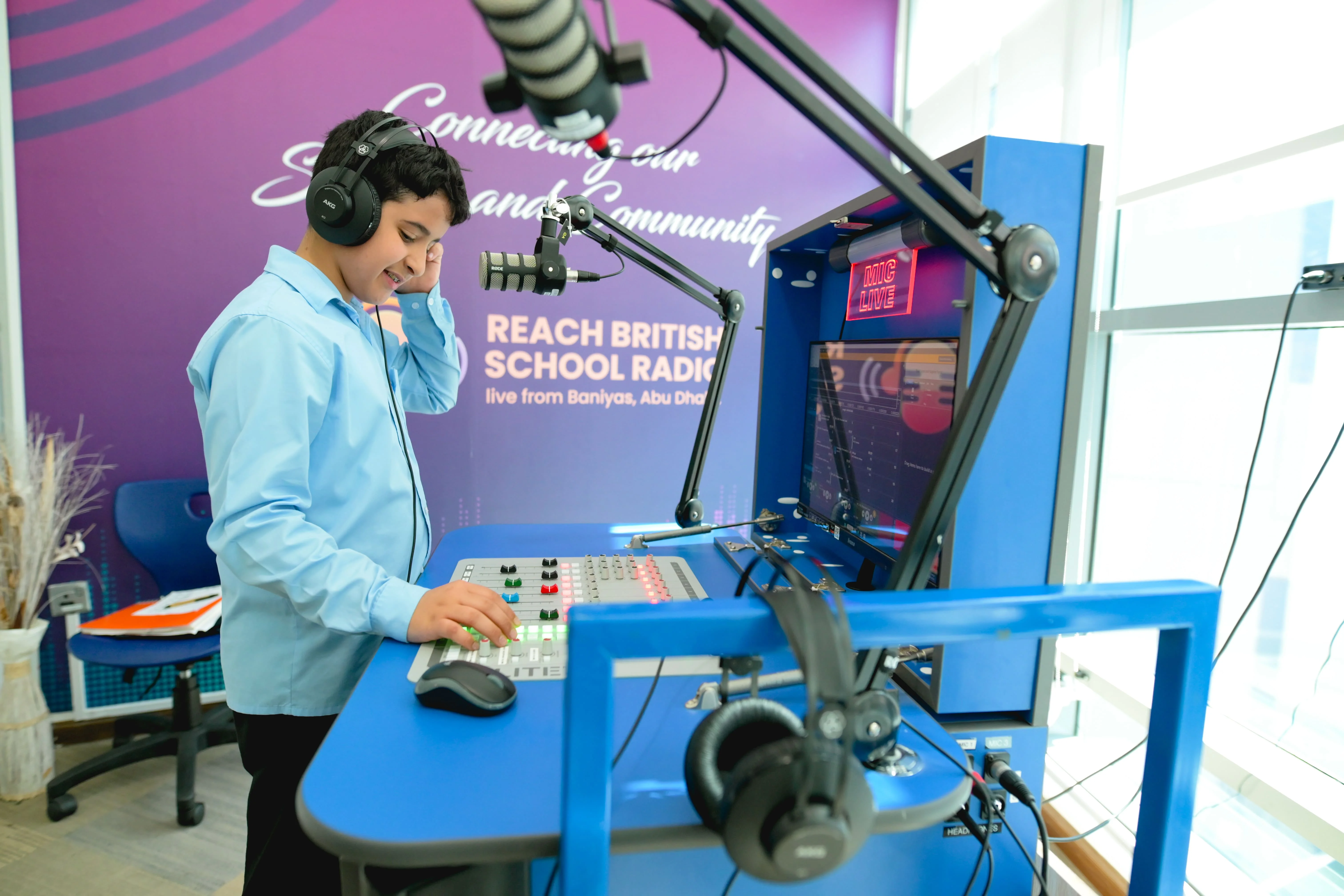 At Reach British School, we are dedicated to providing a dynamic and enriching educational experience for our students. This academic year, we launched our very own RBS Radio. This exciting platform offers our students the opportunity to not only showcase their talents but also to express their voices and connect with their peers in a fun and interactive manner.Our RBS Radio features a diverse range of podcasts, carefully curated music playlists, and engaging educational content. By tuning in, our school community comes together to celebrate creativity, share knowledge, and foster a sense of belonging.In February, we broadcast our first morning show during assembly time as a soft launch of our radio show. Since then, the station has grown to include a specially tailored programme for Ramadan, interviews with staff, parents and siblings to support careers week and a weekly podcast published on Spotify summing up the week's activities, while interviewing a range of people.Our morning radio show celebrates everything that we hold dear at Reach British School. It is an ambitious project that will eventually be completely student-run, developing skills such as presenting, producing, promotion and editing.For those students who struggle to express themselves on paper or to speak in front of a large crowd, the radio is the ideal medium to build confidence and contribute to school life.Whether it is an interview about the transition to A-levels, an assembly on Sustainability or a Meet the Teacher segment, radio can cover these topics in a concise way, making it more manageable for students, especially those who struggle with written English.The radio involves everyone in our school community, including our weatherman from Year 2 through to Senior students, presenting the news. Excitement has grown around the radio, and students are increasingly contributing their own ideas as the station grows organically.We are now ready to share our Radio programming with all of you. Please head over to our Spotify account and enjoy following our journey.”I think that RBS radio is something that connects people and our school, and I think that it is fun to be on the radio to share who I am and what I enjoy. RBS radio brings the school community together, engaging both the Primary and Secondary students. Everyone has the opportunity to participate,” says Scarlett in Year 12“Radio has been an integral part of my life, especially over the last couple of years. It is an exciting prospect to pass these skills onto younger generations.” – Ms Katy Bailey, Deputy Head of Pastoral in Primary and RBS Radio Host.
